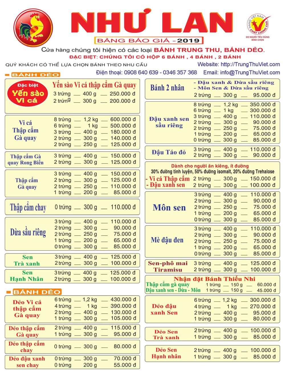 Bảng Giá Bánh Trung Thu KINH ĐÔ